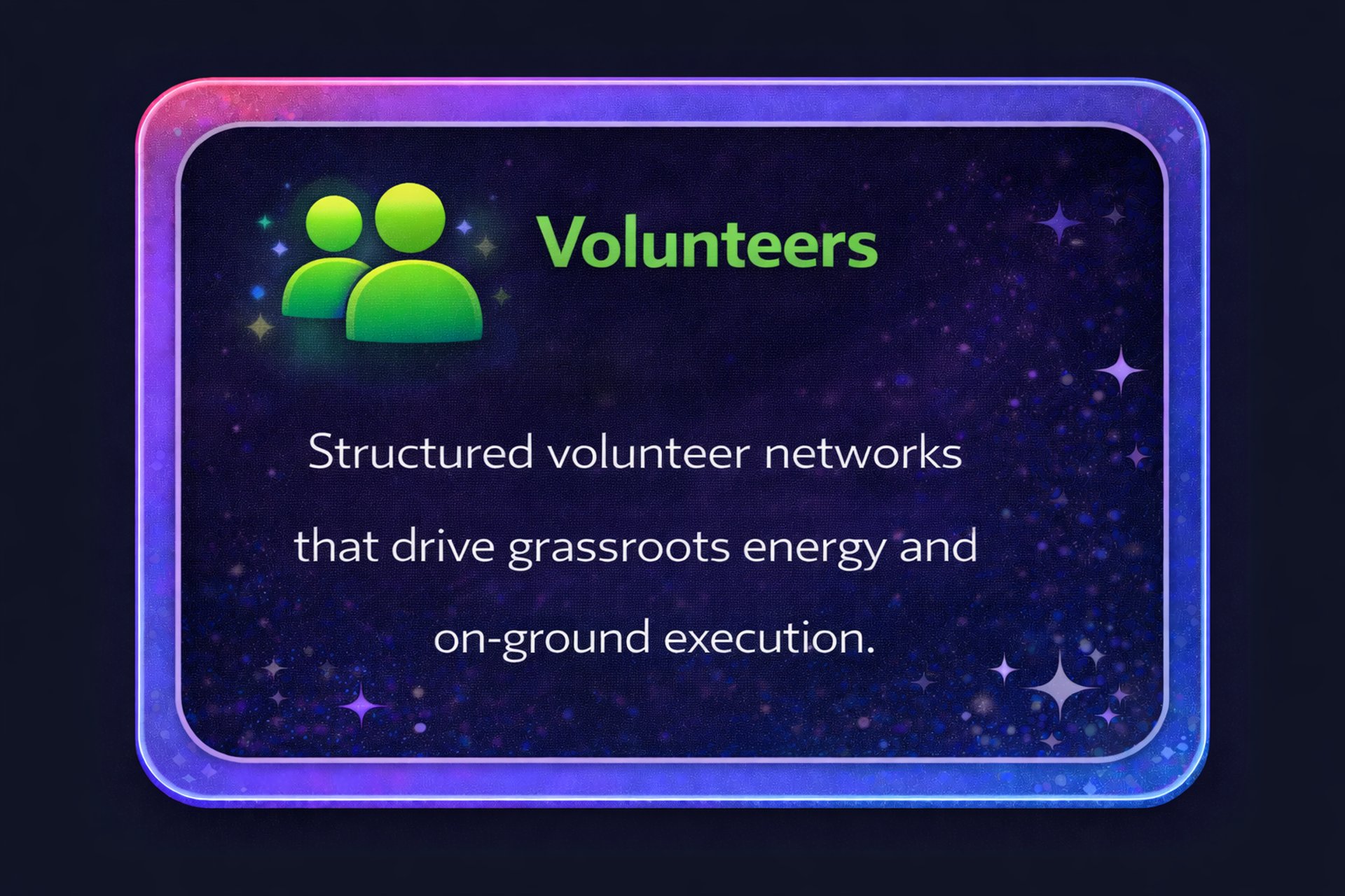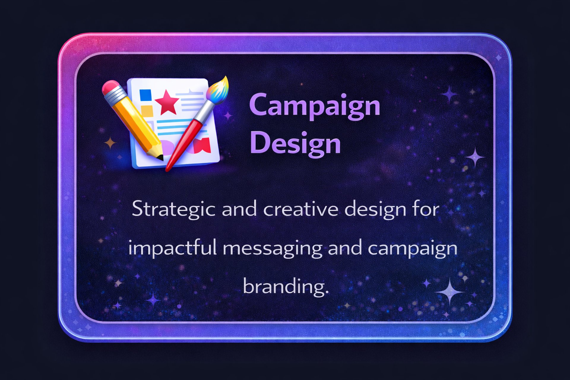 In a rapidly evolving political landscape, we strive to bring clarity, innovation, and discipline to campaigns. We work relentlessly to help our clients connect authentically with people, amplify their voice across platforms, and convert public engagement into measurable electoral success.